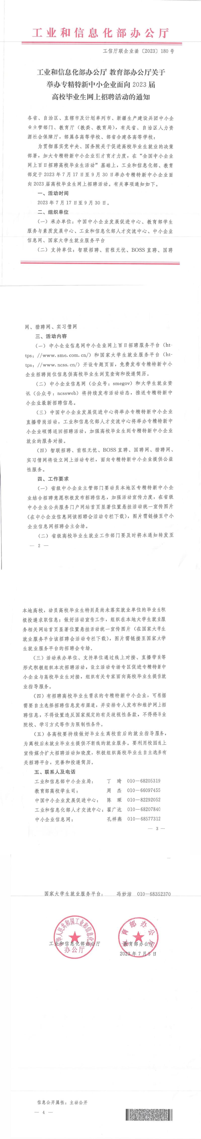工业和信息化部办公厅 教育部办公厅关于举办专精特新中小企业面向2023届高校毕业生网上招聘活动的通知