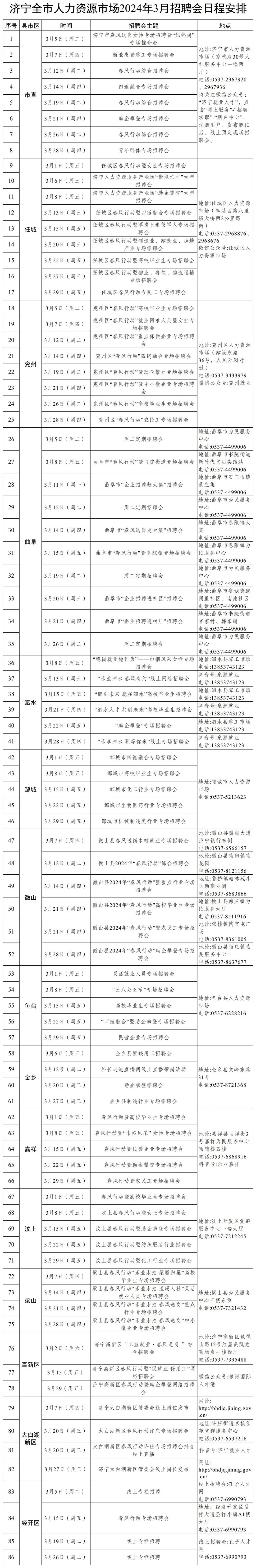 全市人力资源市场2024年3月招聘会日程安排发布