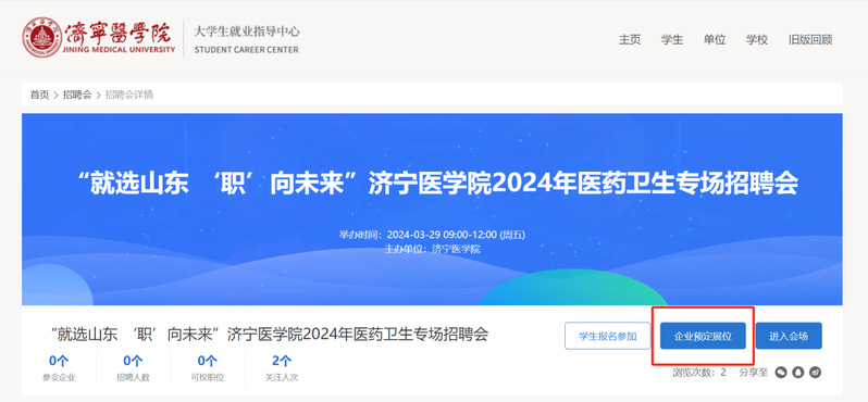 单位招聘会报名链接:http://jyzdjnmc.sdbys.com/largefairs/view/id/3126