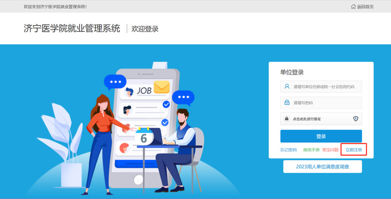 本次招聘会通过济宁医学院就业管理系统(http://jyzdjnmc.sdbys.com/)举办,已在山东高校毕业生就业信息网开通账号的用人单位,可凭省网账号直接登录报名。未注册单位需在就业管理系统先完成用户注册,经审核通过后,即可进行报名。报名要求完成全部注册步骤(带“*”为必填项)。