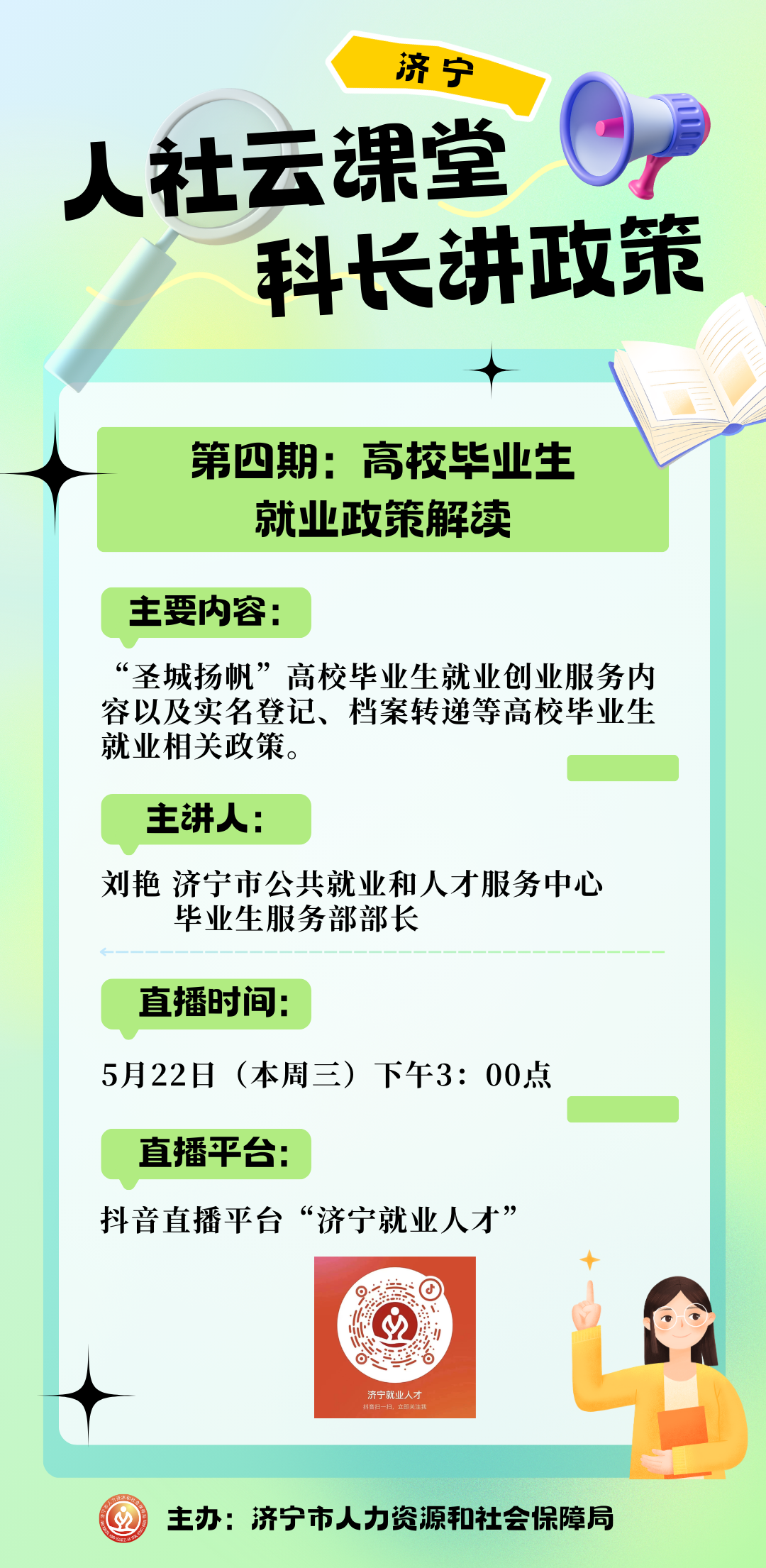 @所有人 济宁市“人社云课堂 科长讲政策”周三直播,敬请关注!
