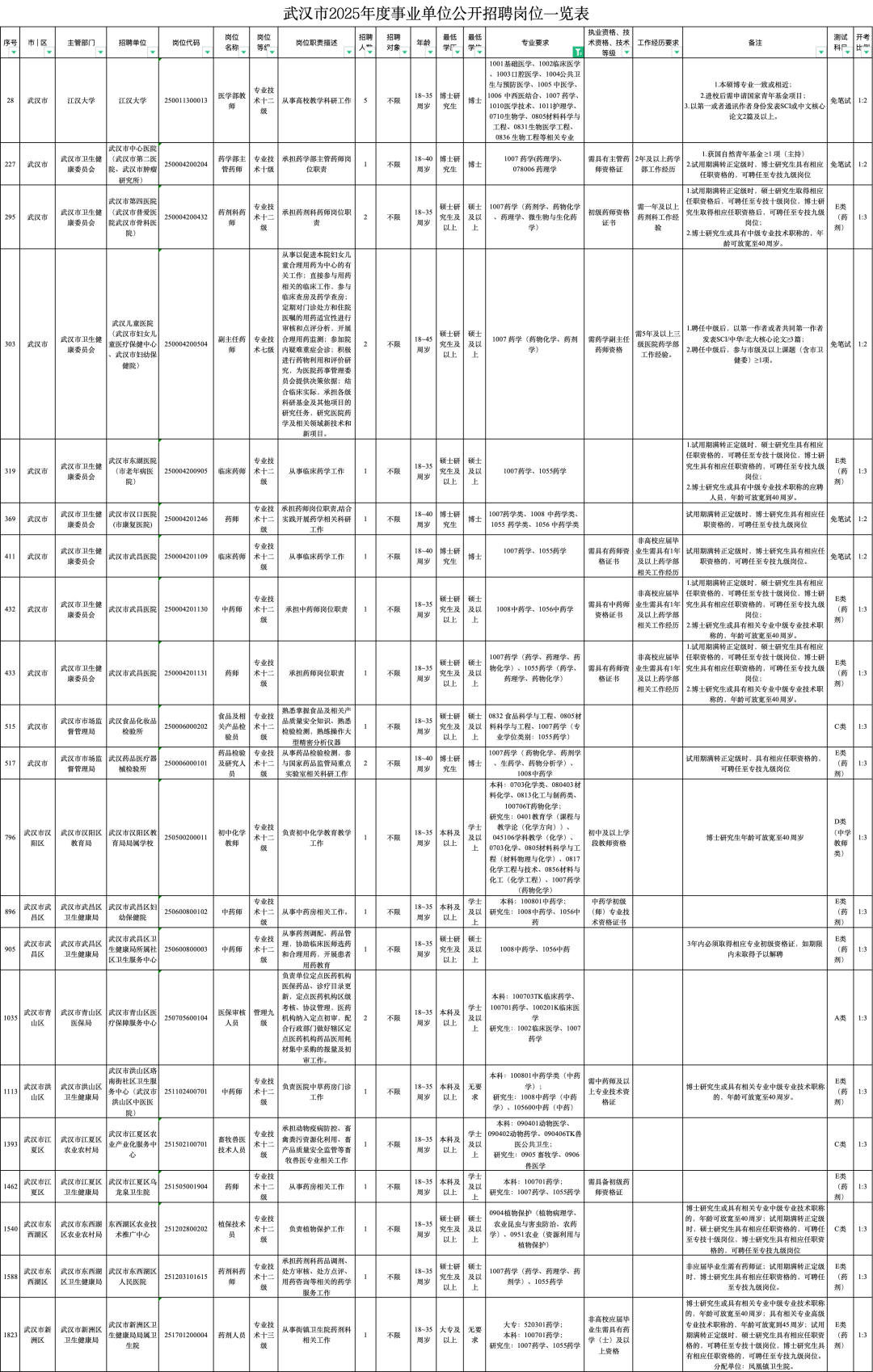 招聘单位、招聘人数及岗位条件等详见《武汉市2025年度事业单位公开招聘岗位一览表》,有关报考政策等详见《武汉市2025年度事业单位公开招聘报考指南》,应聘人员可于2025年2月14日至2月24日通过武汉市人事考试院官网查询。