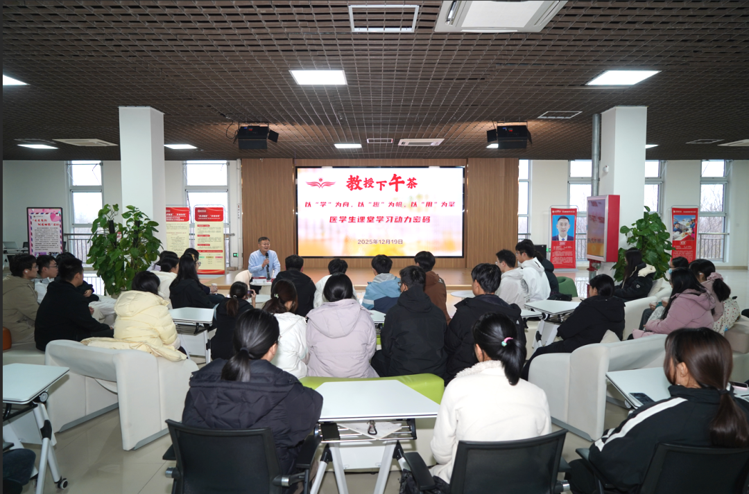 12月19日,学校第十二期“教授下午茶”在大学生就业创业赋能中心举行。山东省教学名师、山东省优秀教师马群教授与同学们面对面交流,共话医学学习的心得与路径。